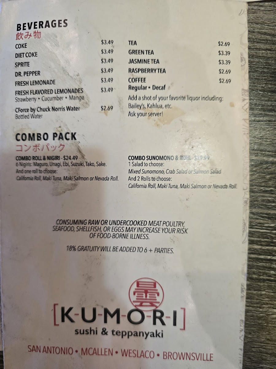 Kumori Sushi & Teppanyaki North Park Menu (2025 Update)
